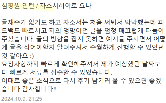 제가 진행한 첨삭 후기와 성과는 다음과 같습니다.