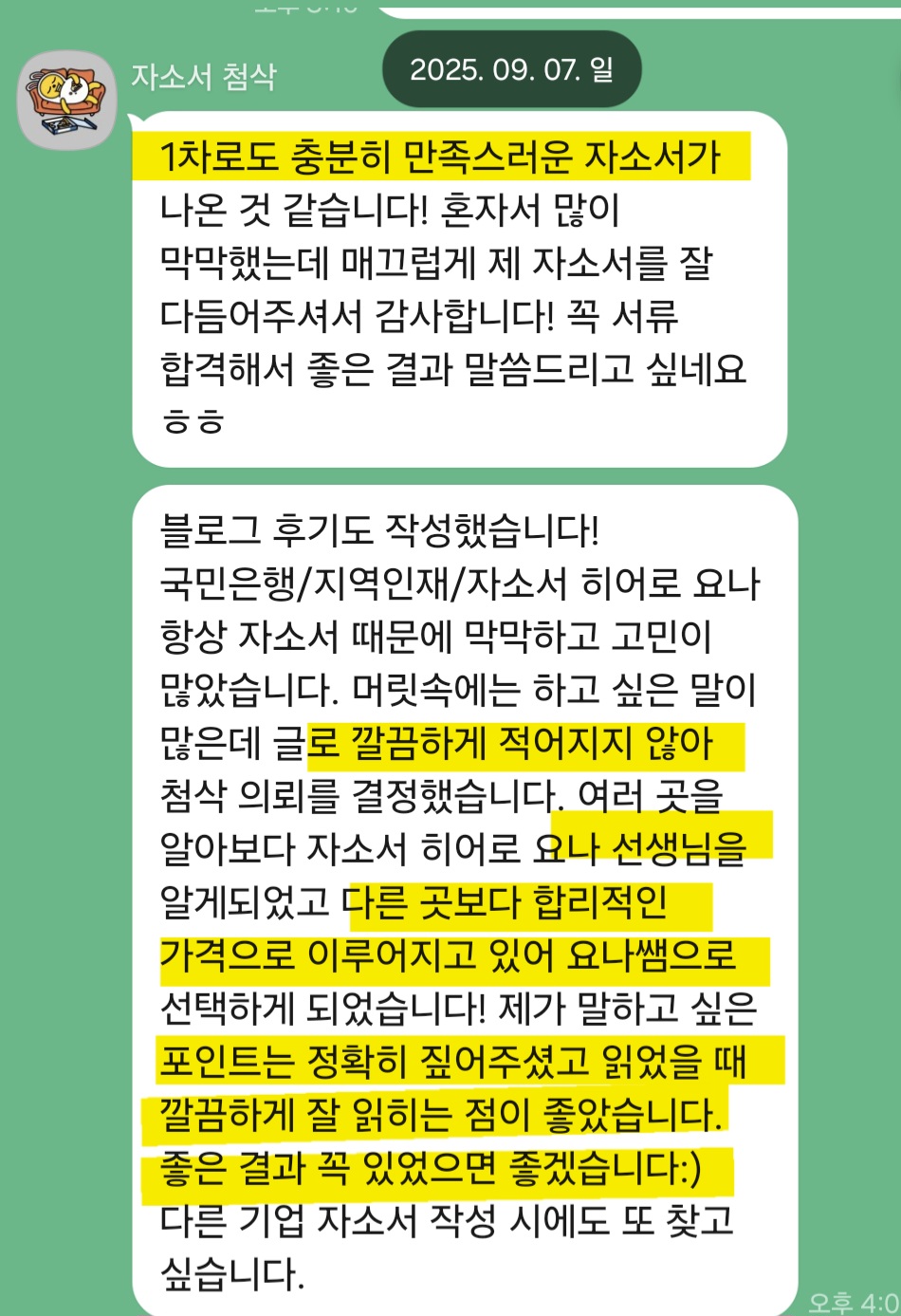 상담이 필요하시거나 본인 상황에 맞춘 첨삭을 원하신다면, 아래 채널을 통해 문의해주세요.