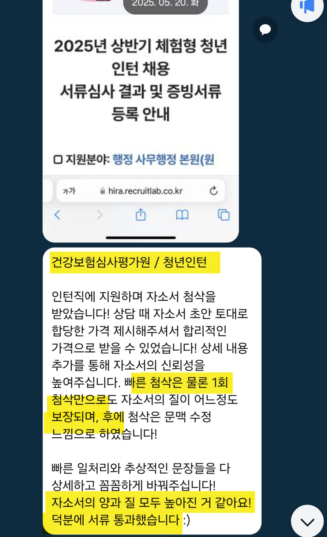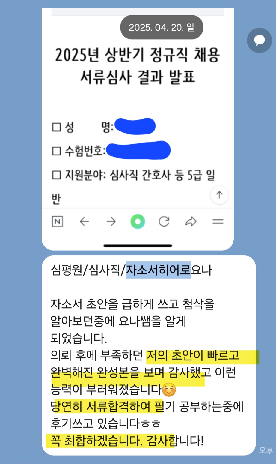 첨삭 합격 후기: