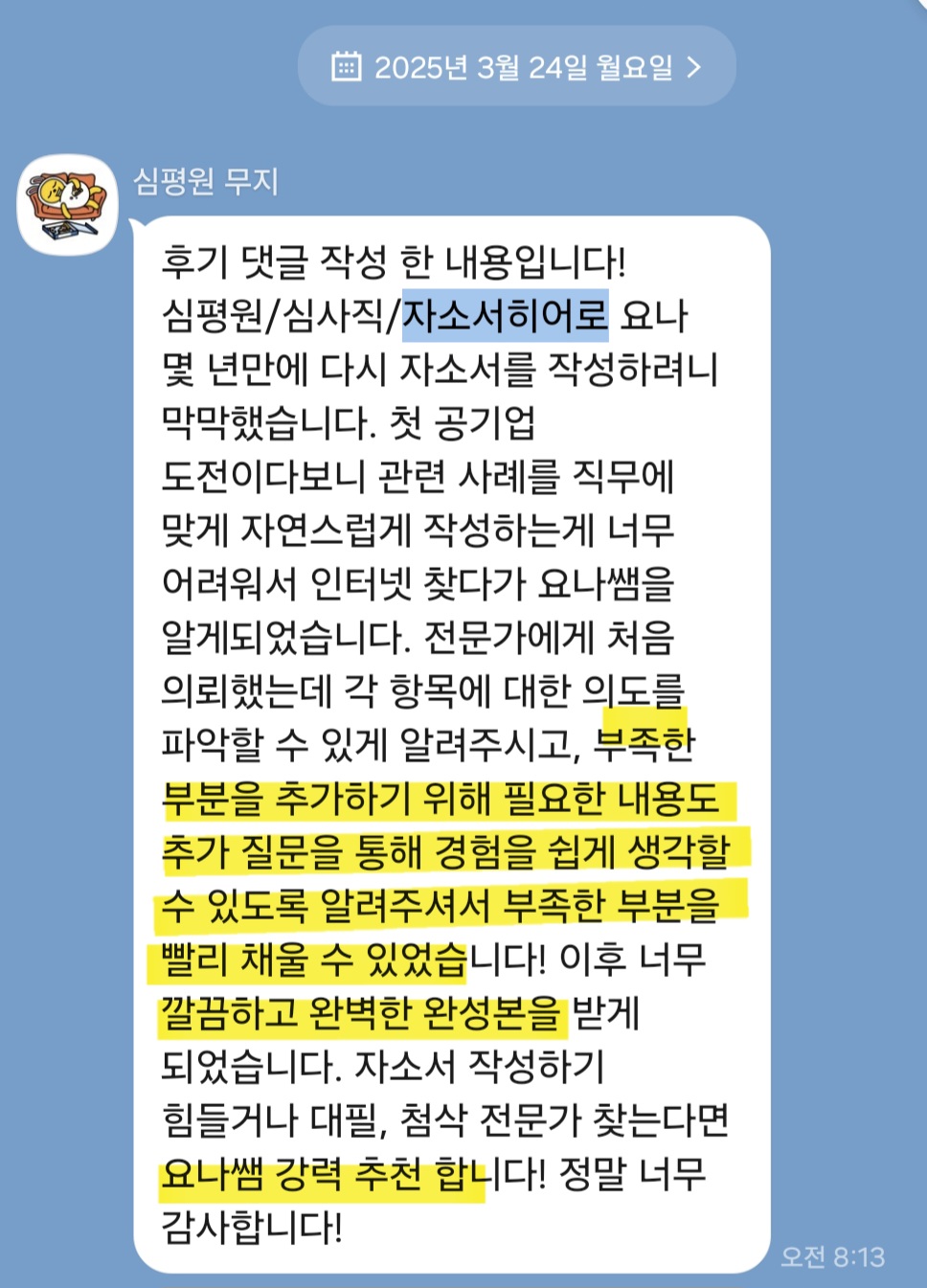 #당일첨삭 #자소서첨삭 #자기소개서첨삭 #자소서대행 #자기소개서대행 #취업자소서 #경력기술서 #이직 #취업 #대입