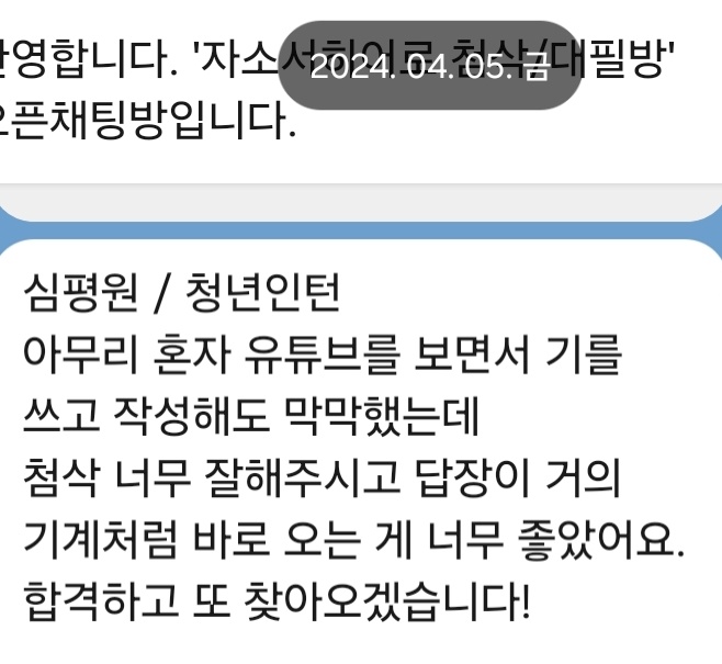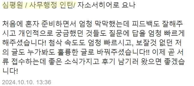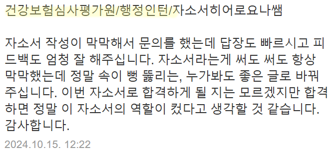 더 많은 합격 후기 및 자기소개서 작성 방법 알아보기: