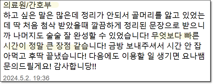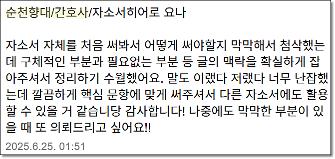 맞춤형 자기소개서 첨삭으로 서류 합격을 보장합니다. 만족도 5.0, 당일 완성 가능!