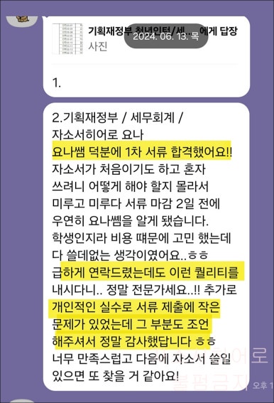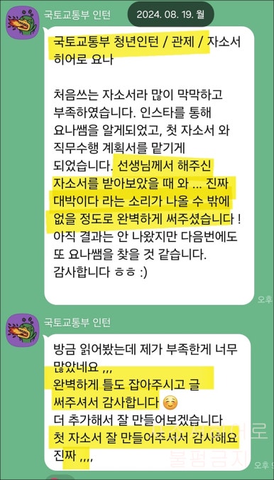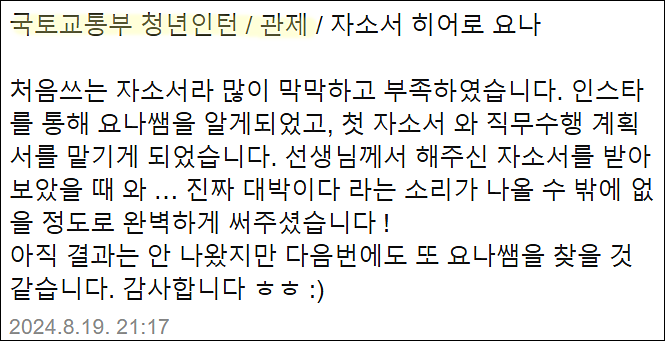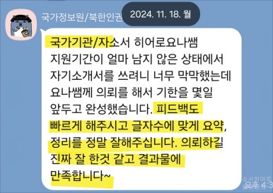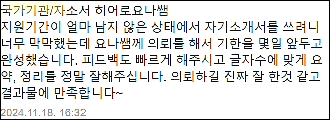 24시간 이내 국토교통부 서류 합격을 위한 맞춤 자기소개서 첨삭 대행 서비스를 제공해 드립니다.