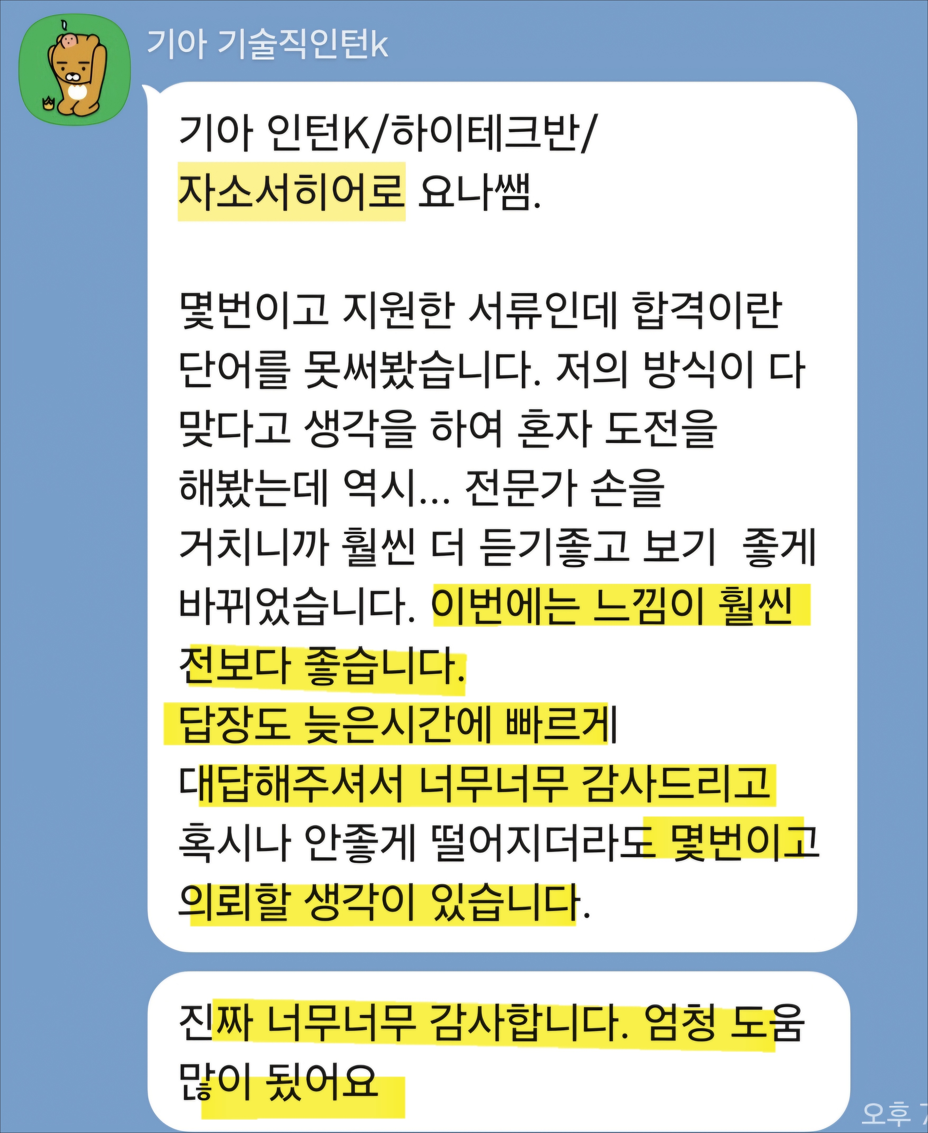 혼자 자소서를 작성하다 보면 방향이 맞는지 불안하셨죠? 자소서히어로는 기아 자기소개서 전용 첨삭·대필 서비스를 제공합니다.