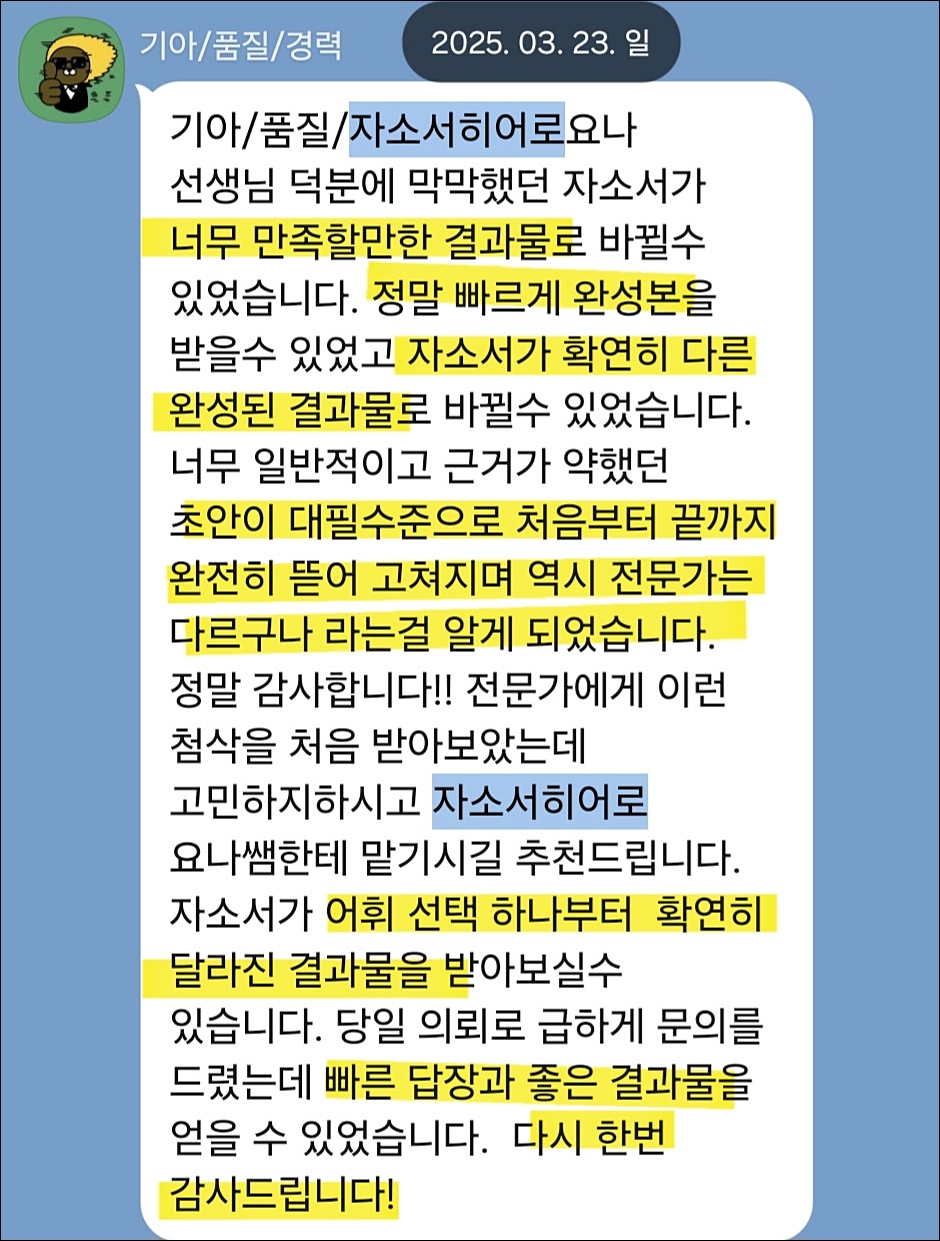 #당일첨삭 #자소서첨삭 #자기소개서첨삭 #자소서대행 #자기소개서대행 #취업자소서 #경력기술서 #이직 #취업 #대입