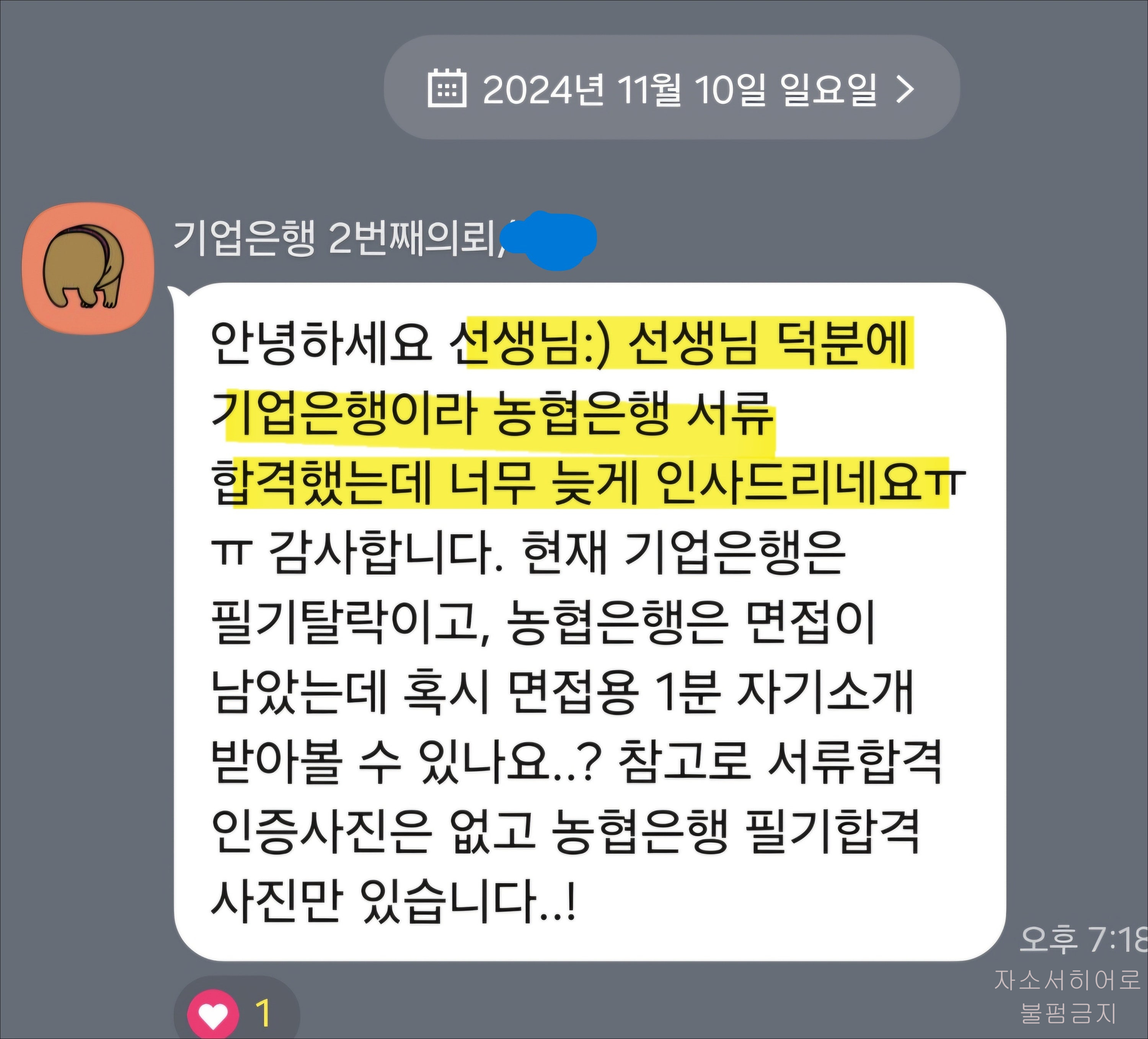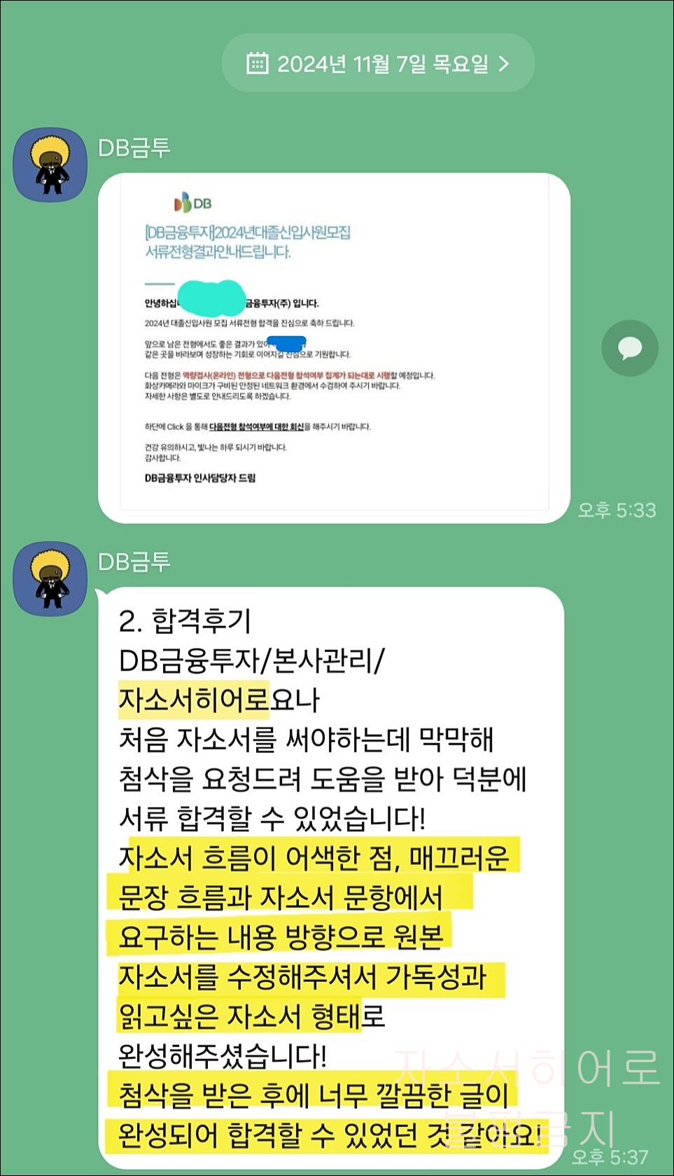 그럼 실제 자기소개서 첨삭 비용 아깝지 않은 합격 후기를 살펴보겠습니다.