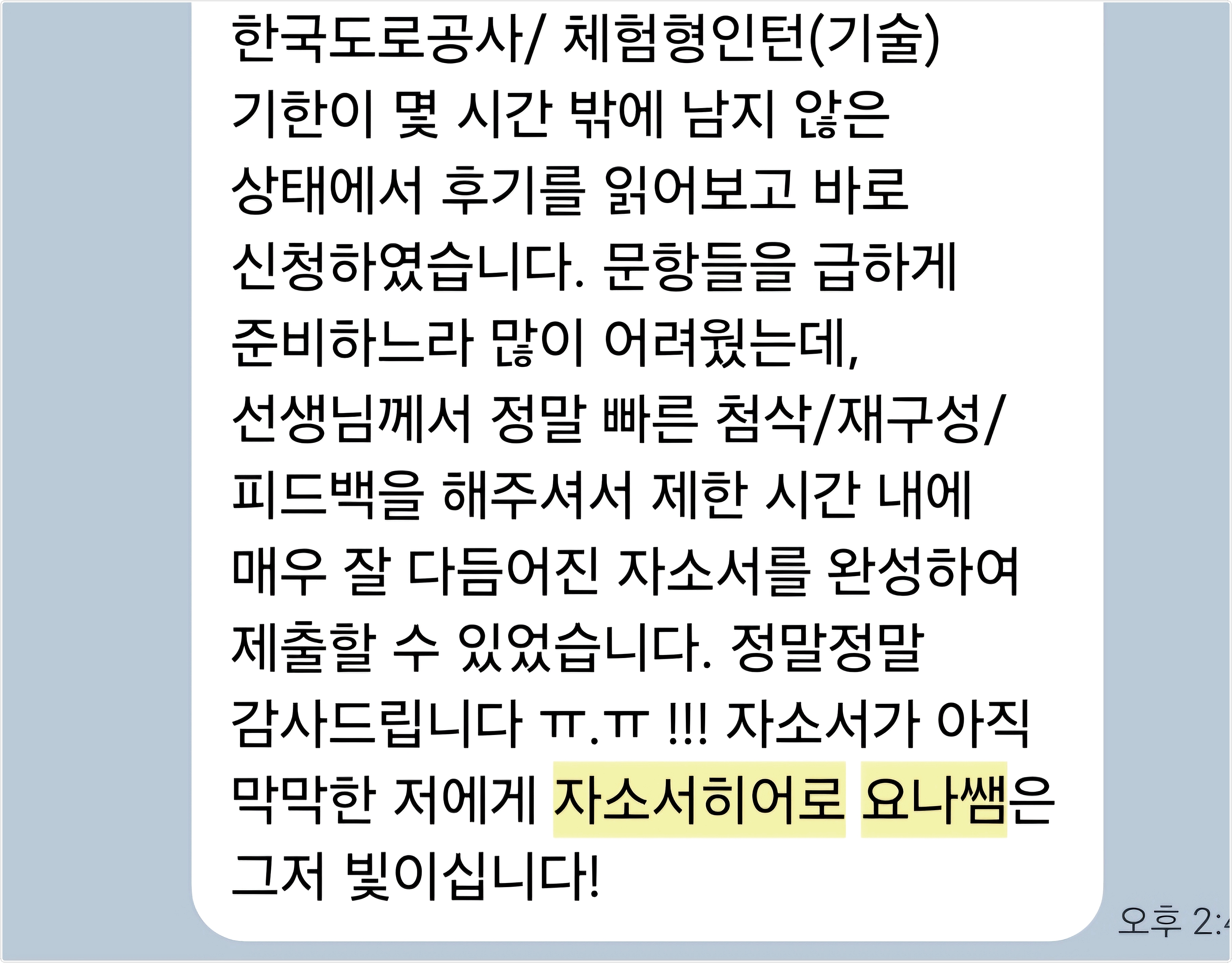 자기소개서 한 편으로 경쟁력을 높이고 싶으시다면, 지금 바로 문의 주세요!