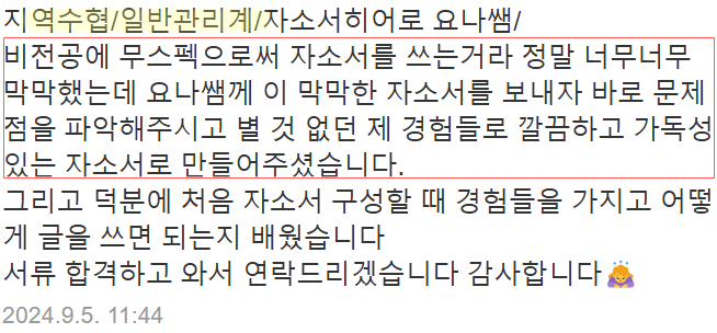 #당일첨삭 #자소서첨삭 #자기소개서첨삭 #자소서대행 #자기소개서대행 #취업자소서 #경력기술서 #이직 #취업 #대입