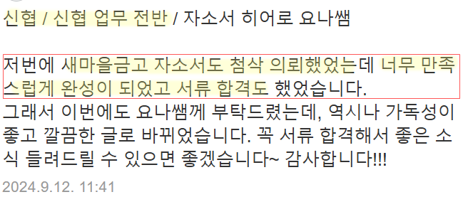 #당일첨삭 #자소서첨삭 #자기소개서첨삭 #자소서대행 #자기소개서대행 #취업자소서 #경력기술서 #이직 #취업 #대입