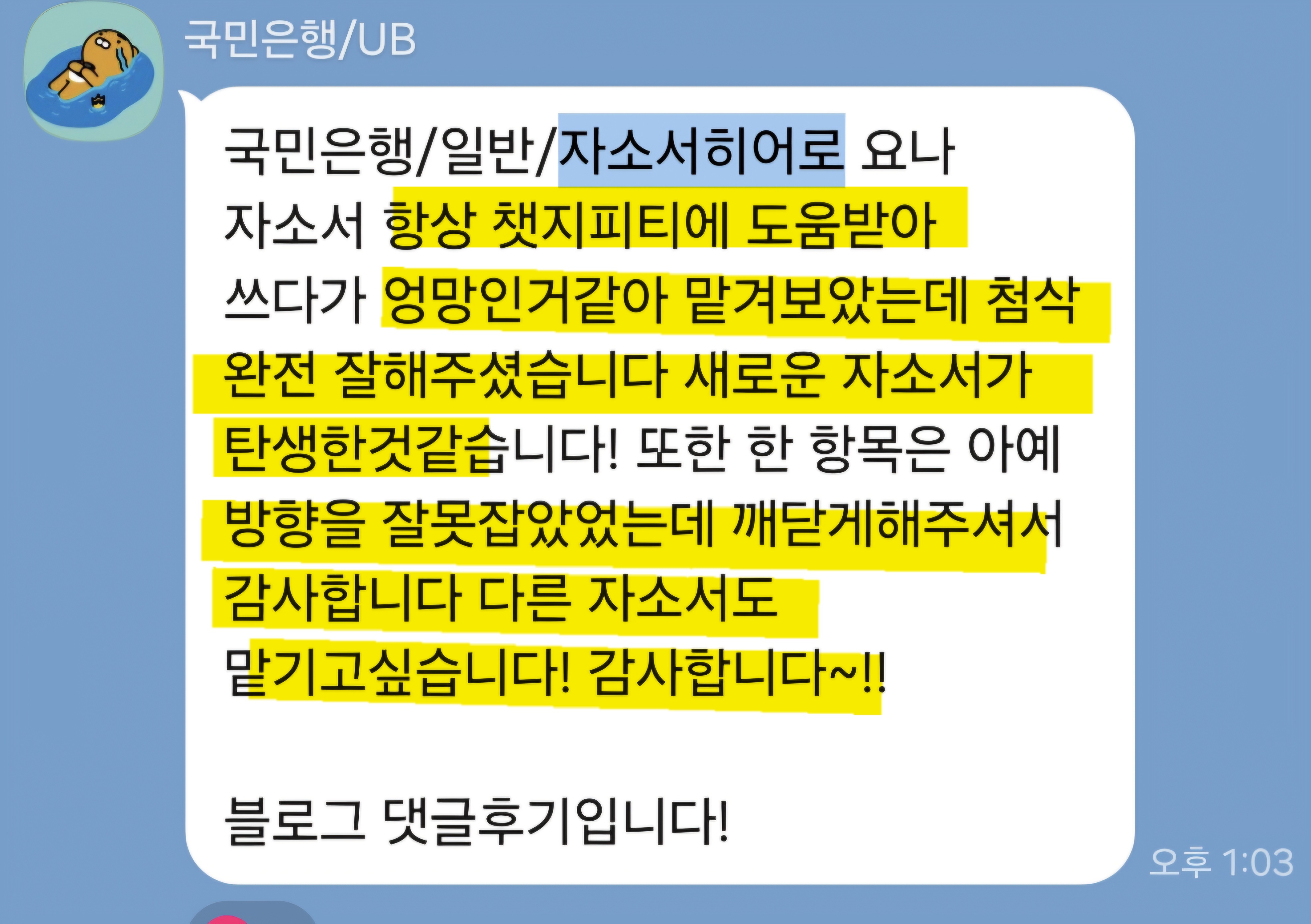 상담이 필요하시거나 본인 상황에 맞춘 첨삭을 원하신다면, 아래 채널을 통해 문의해주세요.