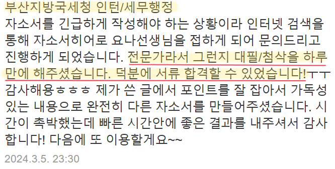 #당일첨삭 #자소서첨삭 #자기소개서첨삭 #자소서대행 #자기소개서대행 #취업자소서 #경력기술서 #이직 #취업 #대입