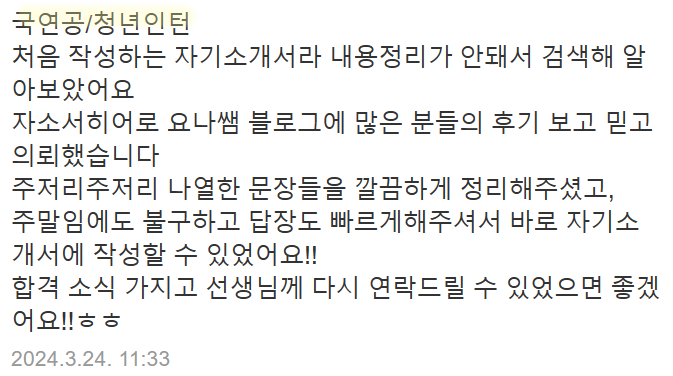 <자소서 첨삭 후기>