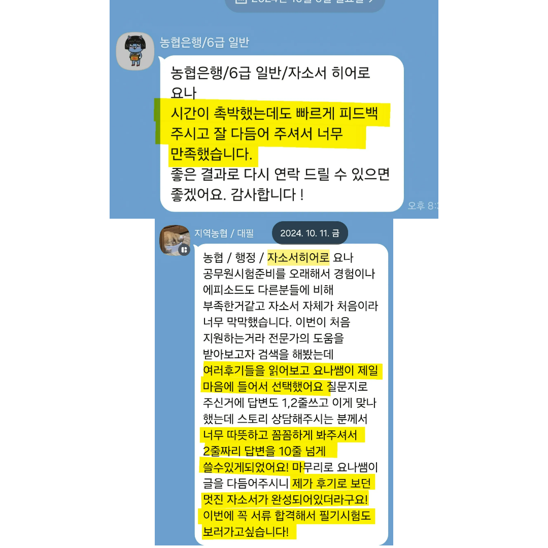 3. 은행권 첨삭, 대필 후기 모음