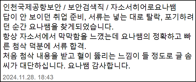 #당일첨삭 #자소서첨삭 #자기소개서첨삭 #자소서대행 #자기소개서대행 #취업자소서 #경력기술서 #이직 #취업 #대입