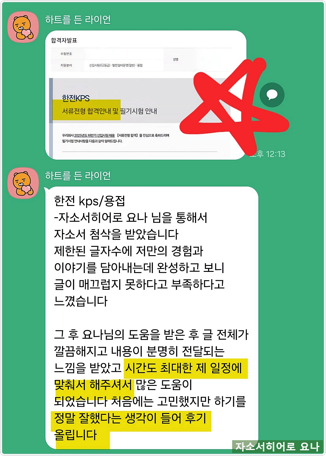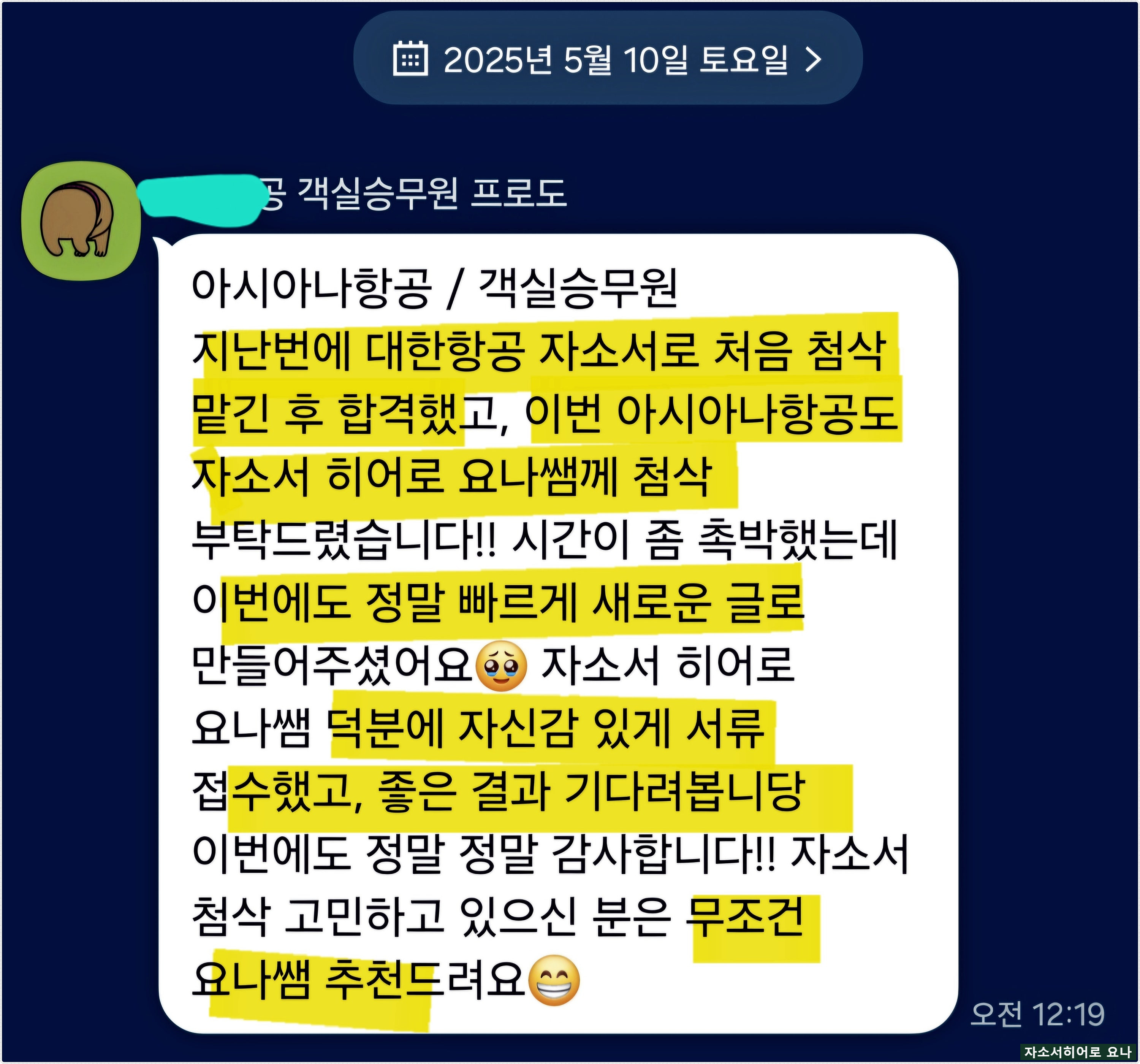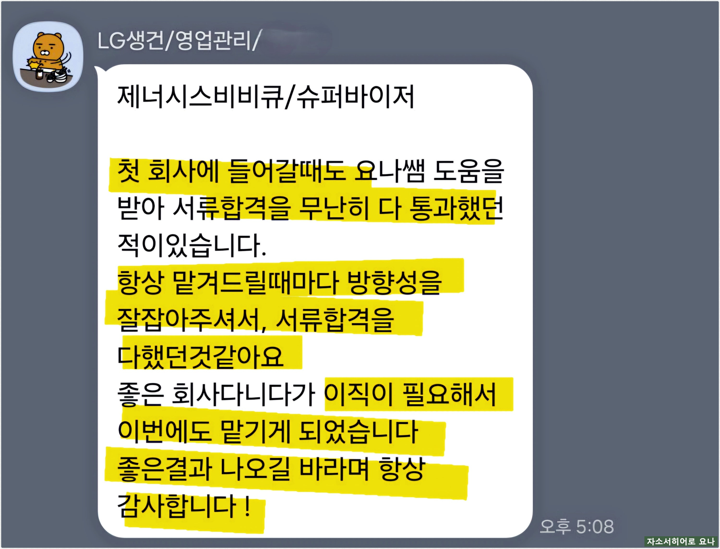 서류 합격률 95% 이상을 기록하며 매달 50명 이상의 의뢰인 자기소개서를 첨삭, 대필하고 있는 자소서히어로 요나입니다.