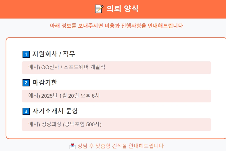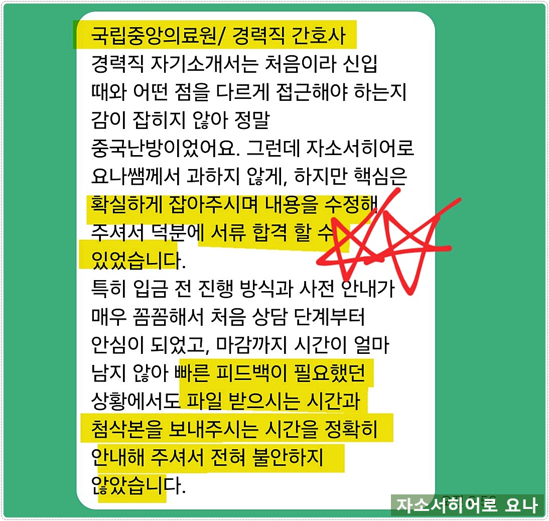 맞춤형 자기소개서 첨삭으로 서류 합격을 보장합니다. 만족도 5.0, 당일 완성 가능!