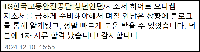 자소서히어로는 10년간 3만 건 이상의 공기업, 공공기관 자기소개서 첨삭 및 대필 경험을 보유하고 있으며, 95% 이상의 서류 합격률을 기록하고 있습니다. 한국교통안전공단을 포함한 다양한 기관의 채용 자기소개서를 맞춤 제작해 드립니다.