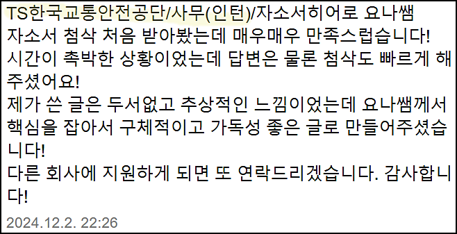 24시간 내 맞춤형 자기소개서 첨삭 서비스 제공!
