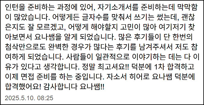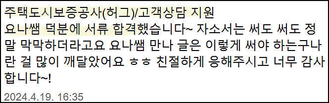 아래 링크에서 합격 후기와 자기소개서 작성 방법을 참고하실 수 있습니다.