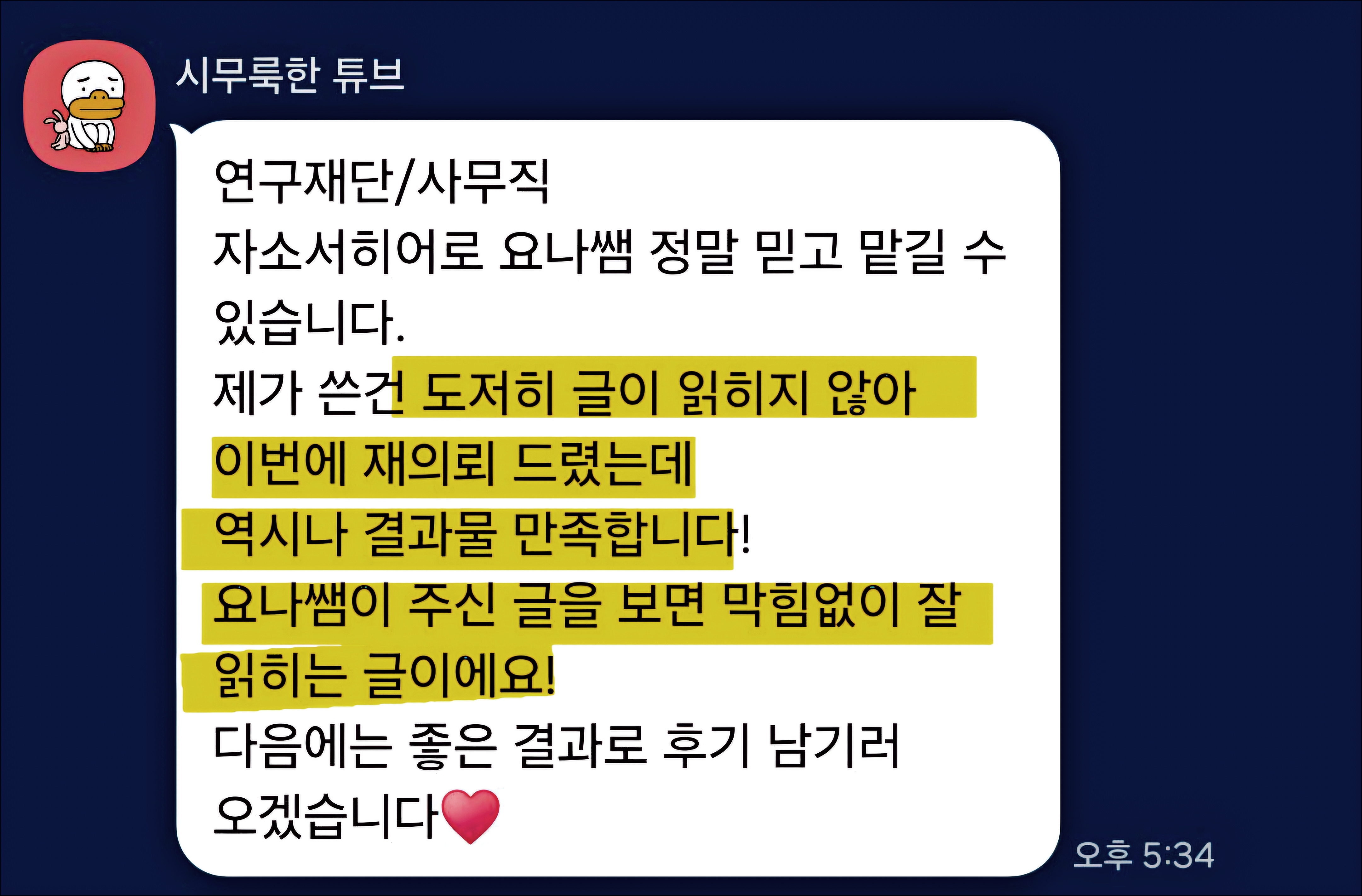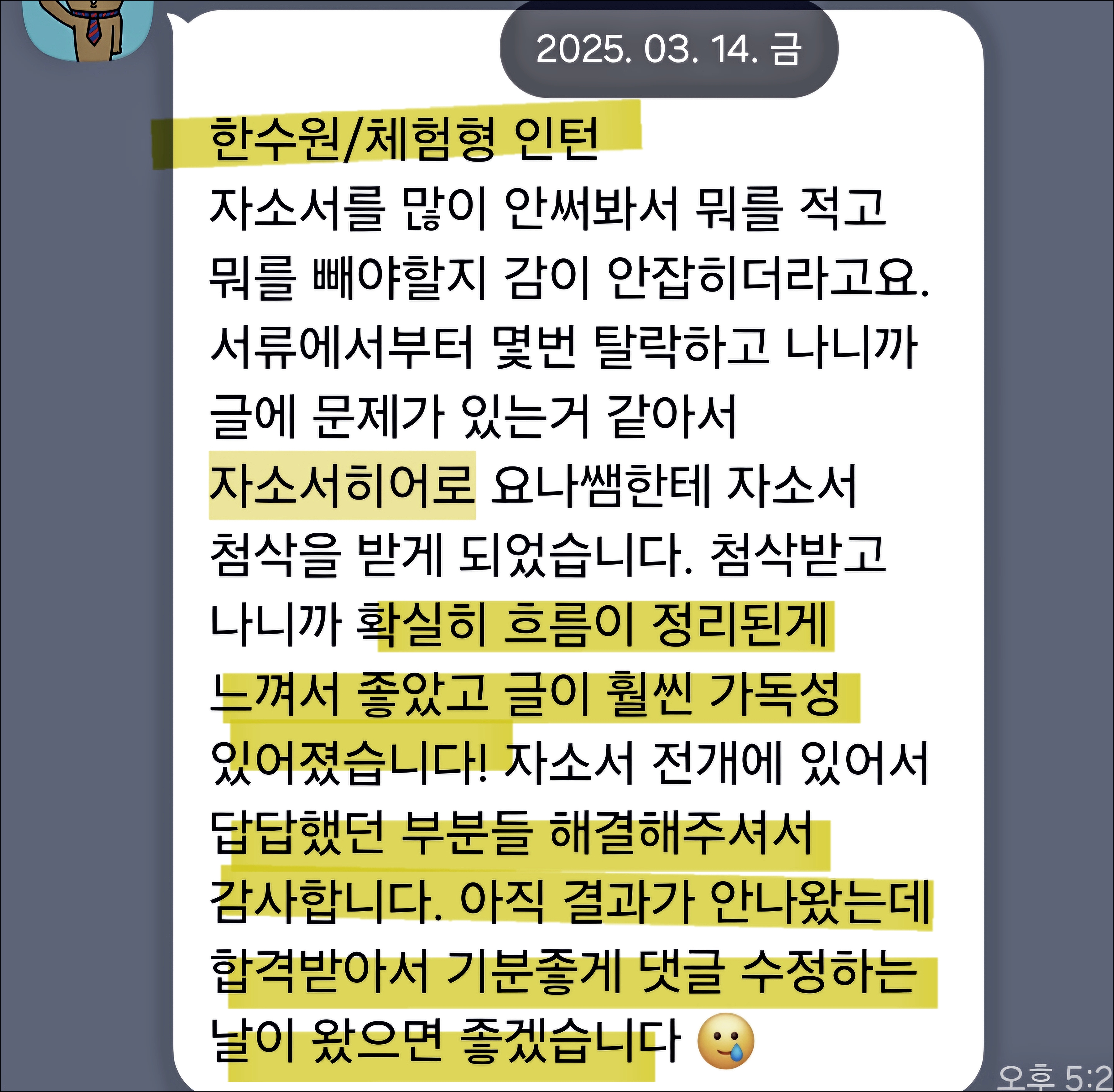 상담이 필요하시거나 자기소개서 방향이 잘 잡히지 않는다면, 아래 링크를 통해 언제든 문의해 주세요.