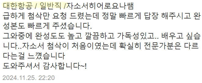 📌 24시간 내 맞춤 자기소개서 첨삭 서비스 제공! 🚀