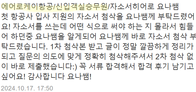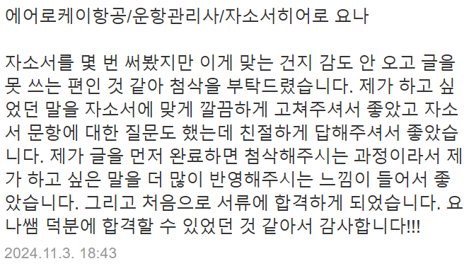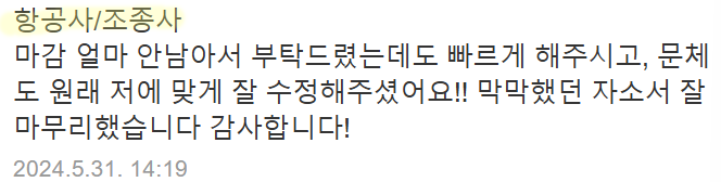 #당일첨삭 #자소서첨삭 #자기소개서첨삭 #자소서대행 #자기소개서대행 #취업자소서 #경력기술서 #이직 #취업 #대입