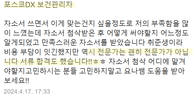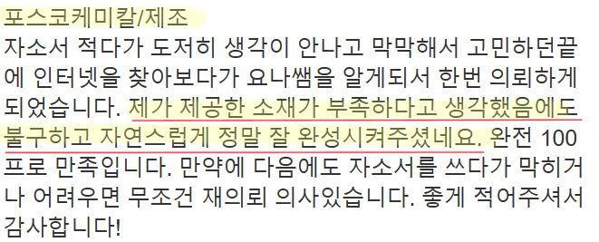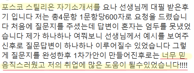 💰 대필 비용: 26만 원 (질문지 제공 후, 이력서/경력기술서 등 참고하여 작성)