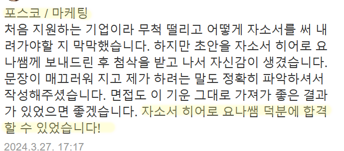 바로 자소서히어로 요나의 전략적 첨삭입니다.