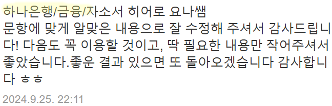 💰 대필 비용: 30만 원 (질문지 제공 후, 이력서/경력기술서 등 참고하여 작성)