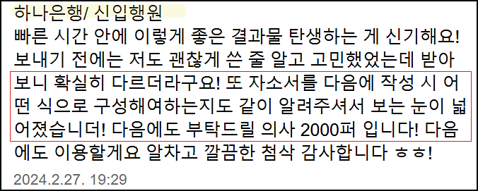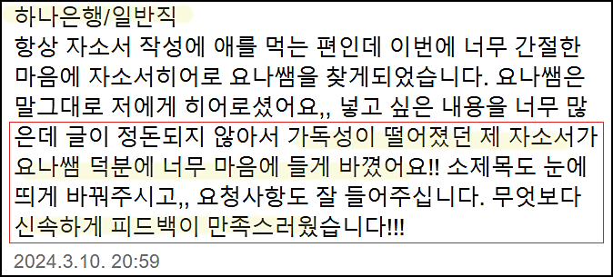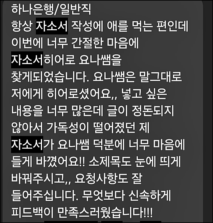 - 금융권 및 공기업 자기소개서 첨삭·대필 30,000건 이상