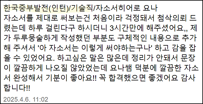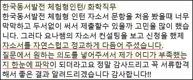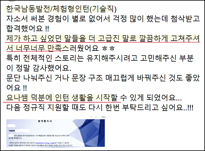 한국동서발전 인턴 자기소개서 첨삭 대행 서비스