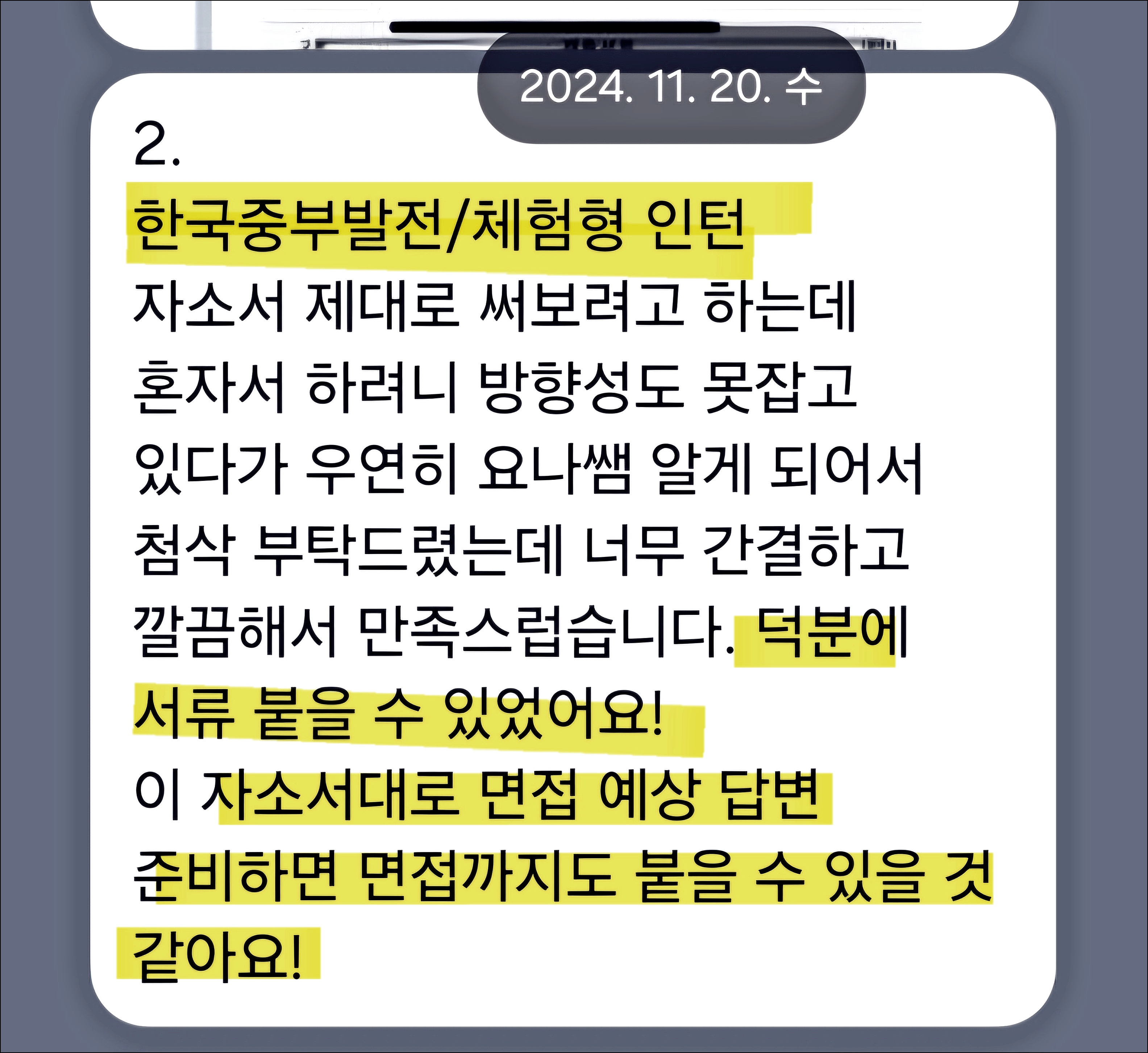한국동서발전 인턴 자기소개서 작성 팁