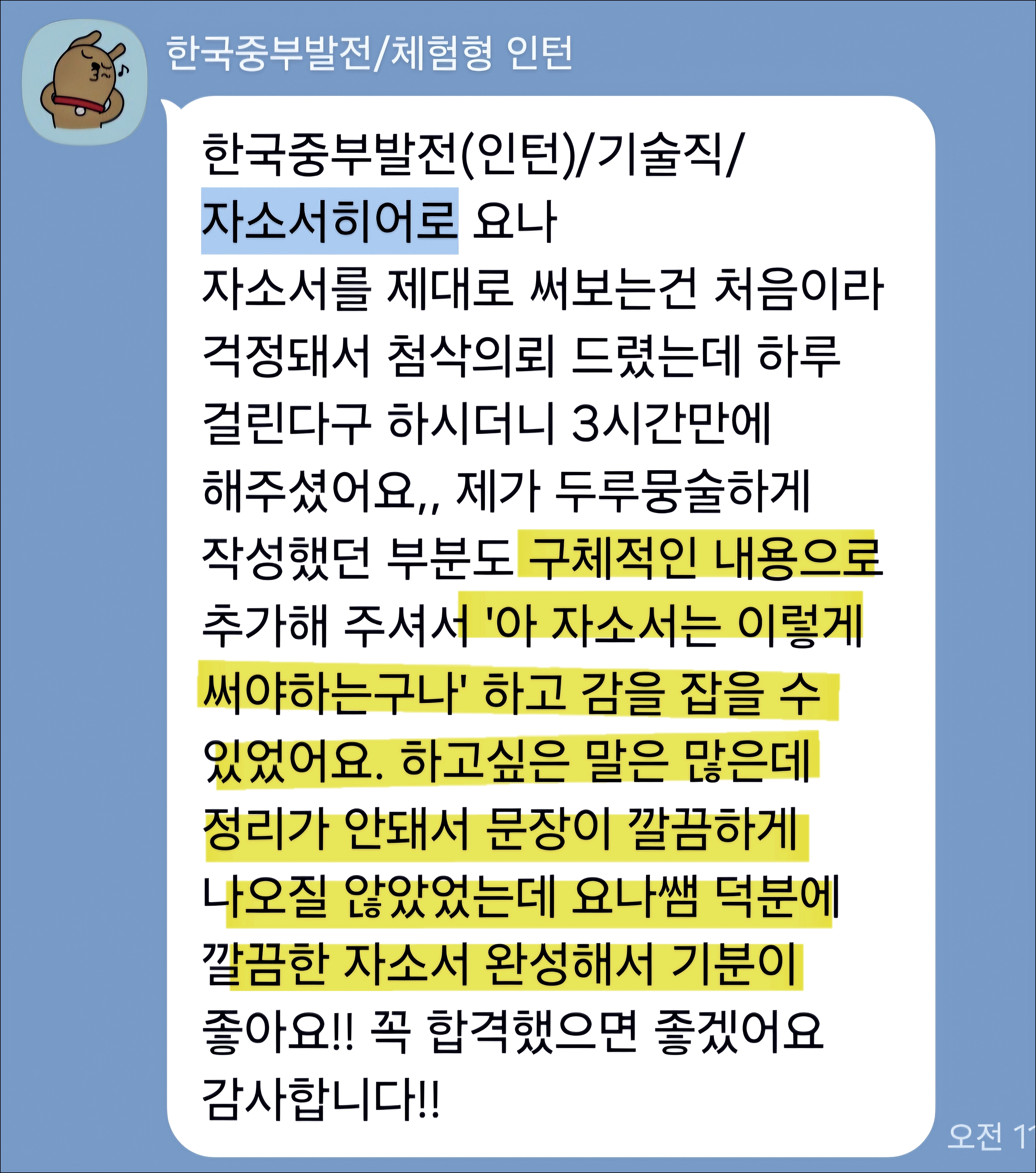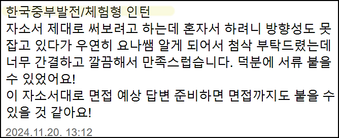한국동서발전 인턴 자기소개서 첨삭 대행 서비스