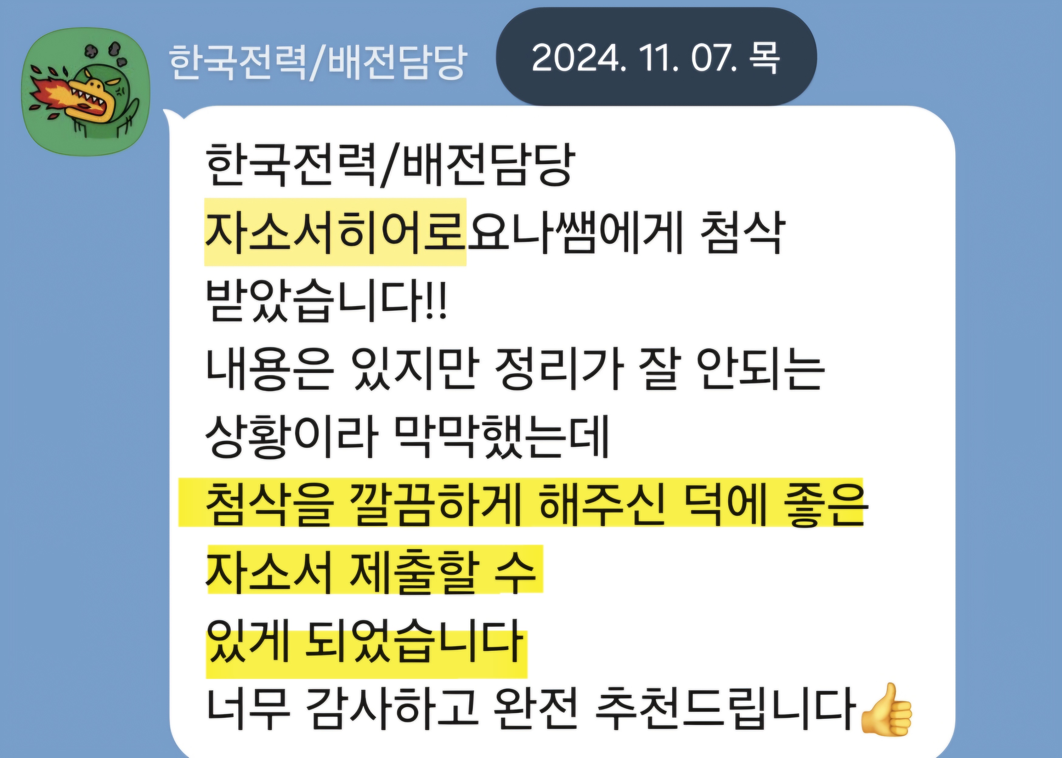 이번 인턴십은 에너지 분야 실무 경험을 쌓을 수 있는 절호의 기회이며, 서류 전형에서 자기소개서의 비중이 매우 큽니다.