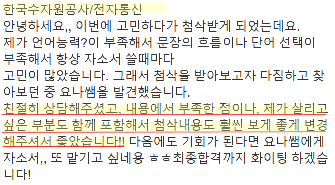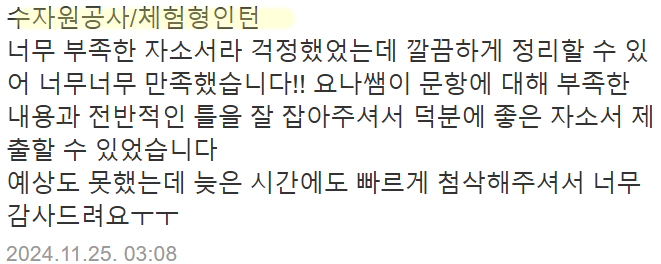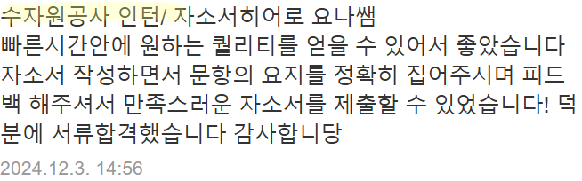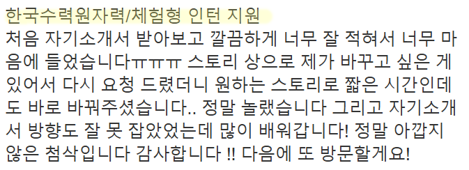 대필: 30만 원 (질문지 제공 후, 이력서/경력기술서 등 참고하여 작성)