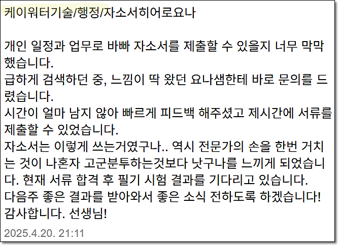 #당일첨삭 #자소서첨삭 #자기소개서첨삭 #자소서대행 #자기소개서대행 #취업자소서 #경력기술서 #이직 #취업 #대입