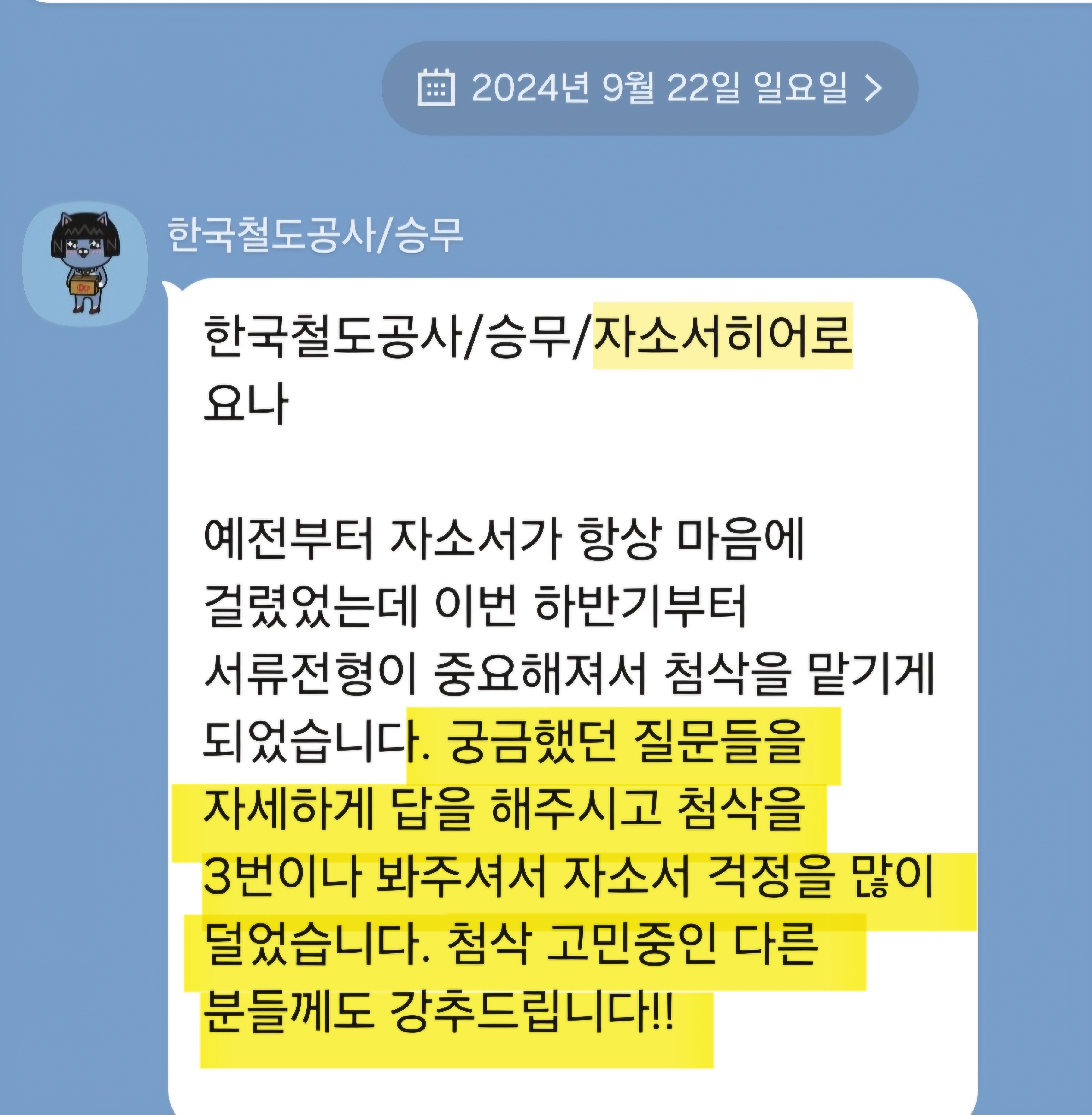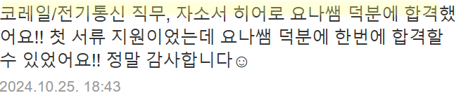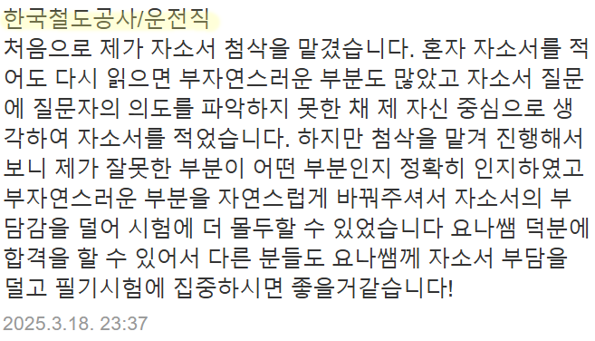 또한 실제 코레일 합격 후기 및 자기소개서 작성법은 아래 링크에서 확인하실 수 있습니다.