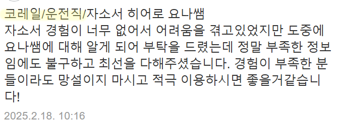 #당일첨삭 #자소서첨삭 #자기소개서첨삭 #자소서대행 #자기소개서대행 #취업자소서 #경력기술서 #이직 #취업 #대입