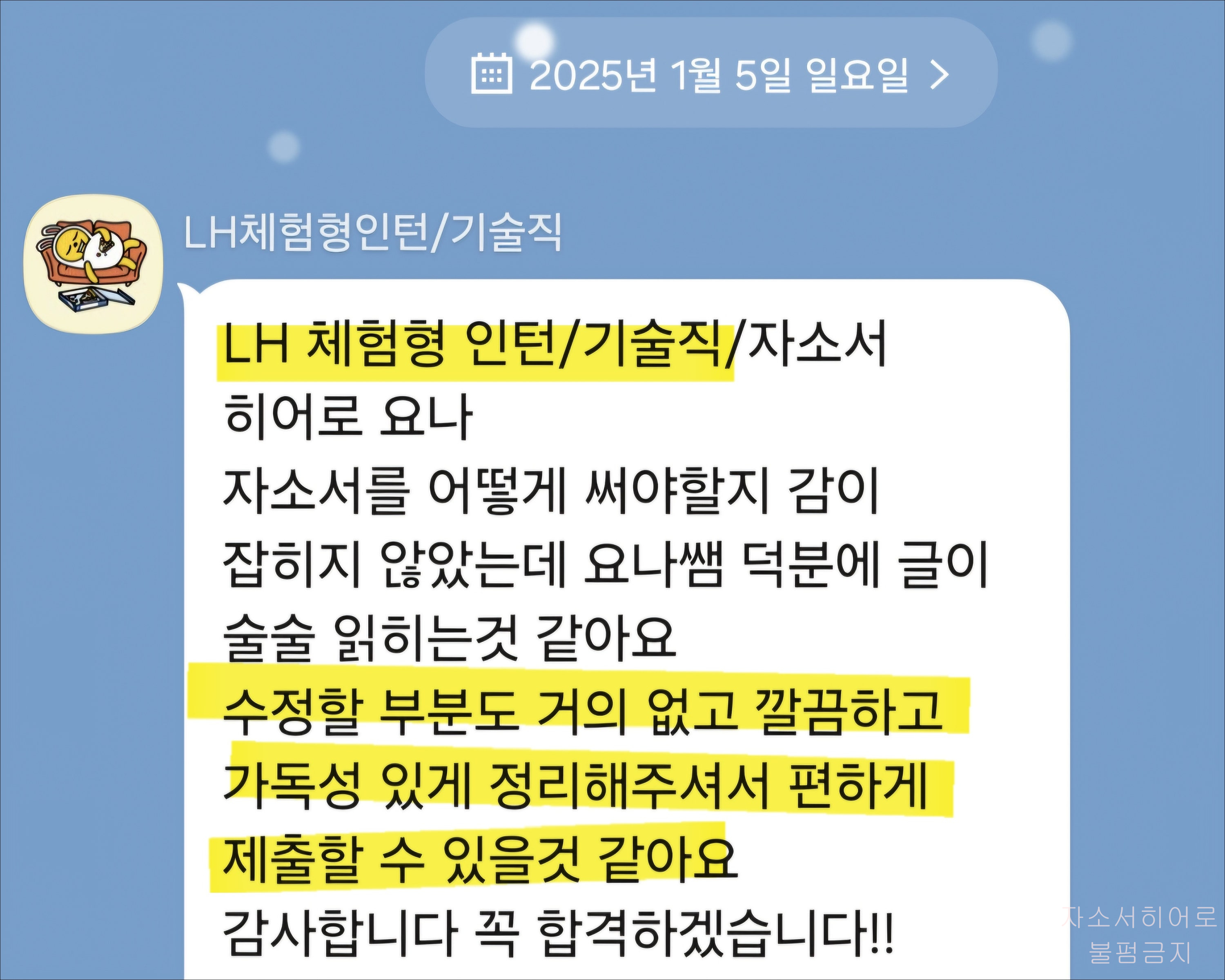오늘은 LH 인턴 자소서를 처음 준비하는 분들도 쉽게 방향을 잡을 수 있도록, 합격자들이 실제로 활용한 전략과 첨삭 포인트를 자세히 안내해드리겠습니다.