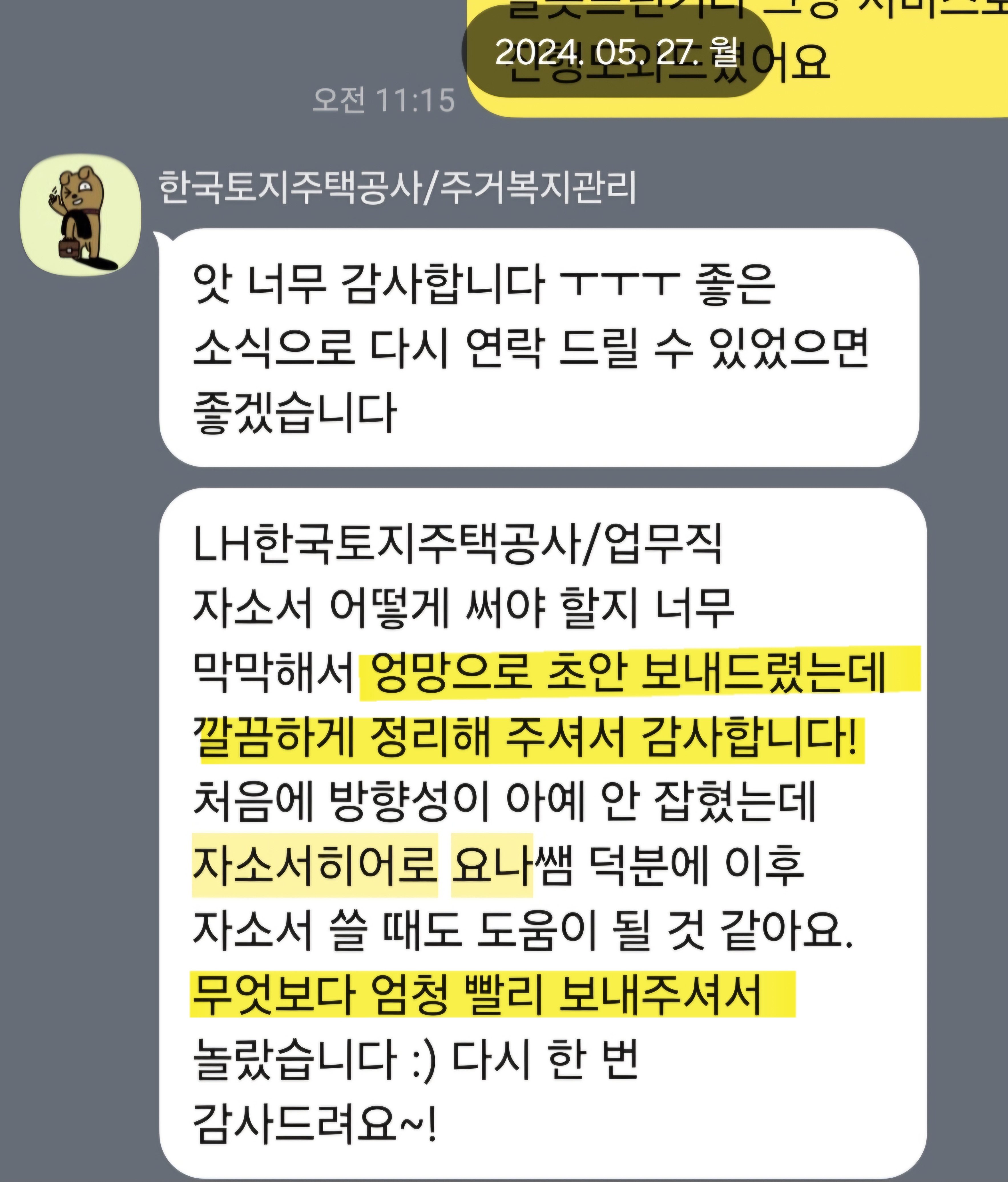 예시: 주거 환경 개선이 주민들의 삶의 질과 밀접하게 연결된다는 점에 매력을 느꼈습니다.
