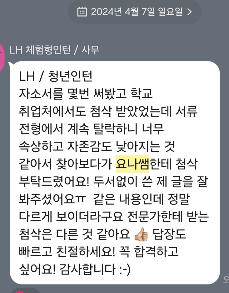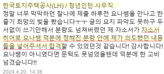 - LH 체험형 인턴 과정을 통해 직무 역량을 실질적으로 키우고 싶다는 목표를 설정합니다.
