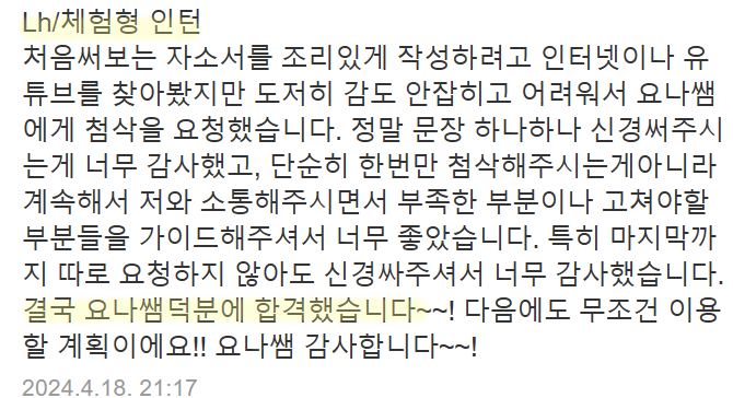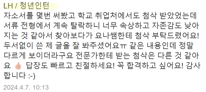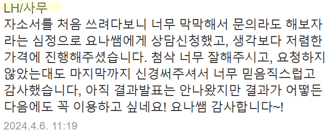 | SK하이닉스 자기소개서 첨삭 및 대필 가이드 성공적인 합격을 위한 준비 방법 (0) | 2024.12.30 |