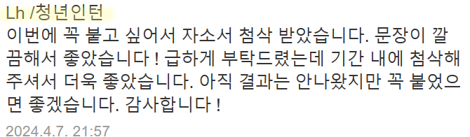 | SK하이닉스 자기소개서 첨삭 및 대필 가이드 성공적인 합격을 위한 준비 방법 (0) | 2024.12.30 |