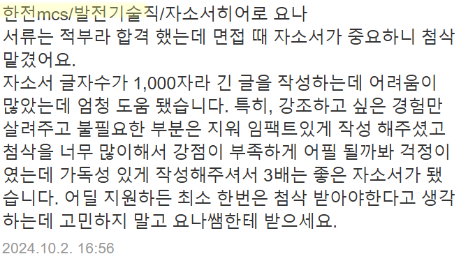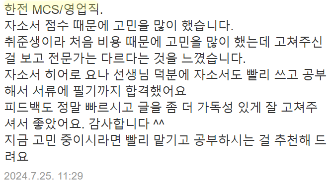 💰 대필 비용: 26만 원 (질문지 제공 후, 이력서/경력기술서 등 참고하여 작성)