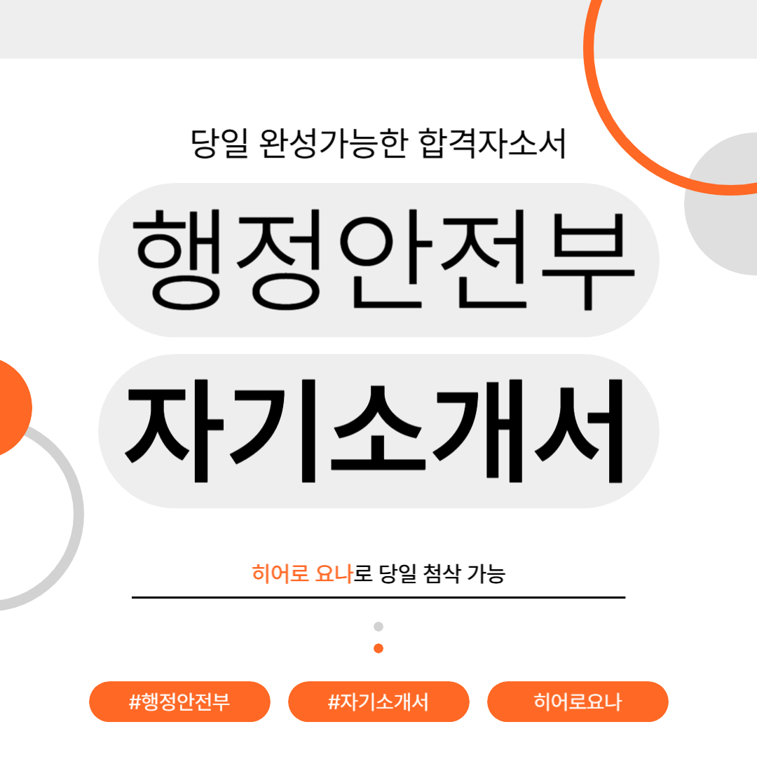 합격의 첫 관문인 자기소개서 작성은 어떻게 해야 할까요? 오늘은 행정안전부 자기소개서 작성법과 함께, 준비 과정에서 필요한 꿀팁을 안내해 드리겠습니다.