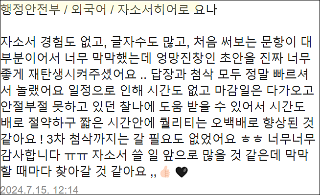 "자기소개서가 어렵게만 느껴지신다면, 전문가의 도움으로 차별화된 자소서를 완성하세요!"