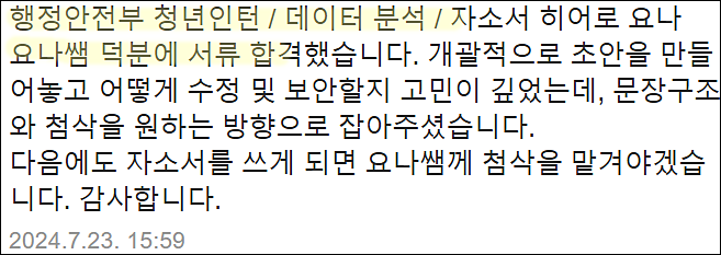 | 롯데슈퍼·롯데손해보험 자기소개서 작성 및 합격 후기! (2) | 2024.12.11 |