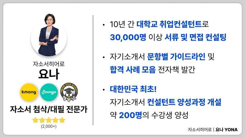 - 3만 건 이상의 서류 및 면접 컨설팅 진행