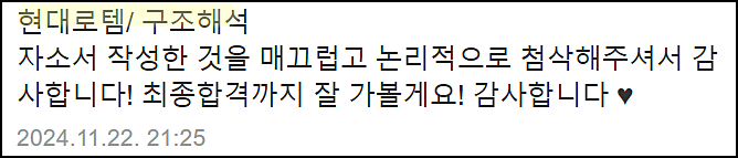 - 24시간 내 신속하고 꼼꼼한 피드백 제공