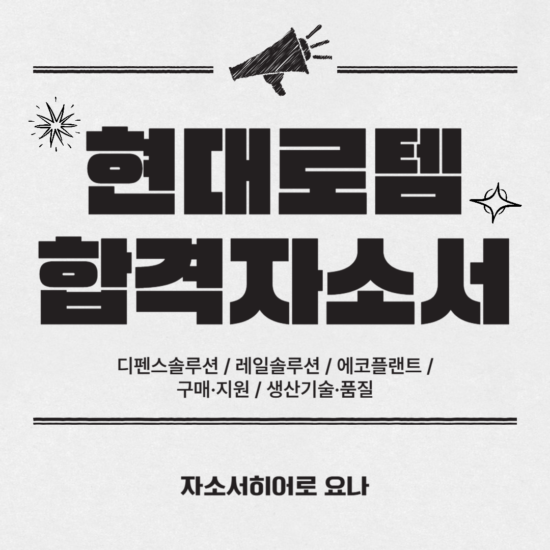 현대로템은 디펜스솔루션, 레일솔루션, 에코플랜트 등 다양한 사업 부문을 운영하고 있으며, 직무별로 요구하는 역량도 다릅니다. 하지만 자기소개서 항목은 전 직무 동일하기 때문에, 지원자는 각 항목에서 자신의 직무에 맞는 핵심 역량을 부각해야 합니다.